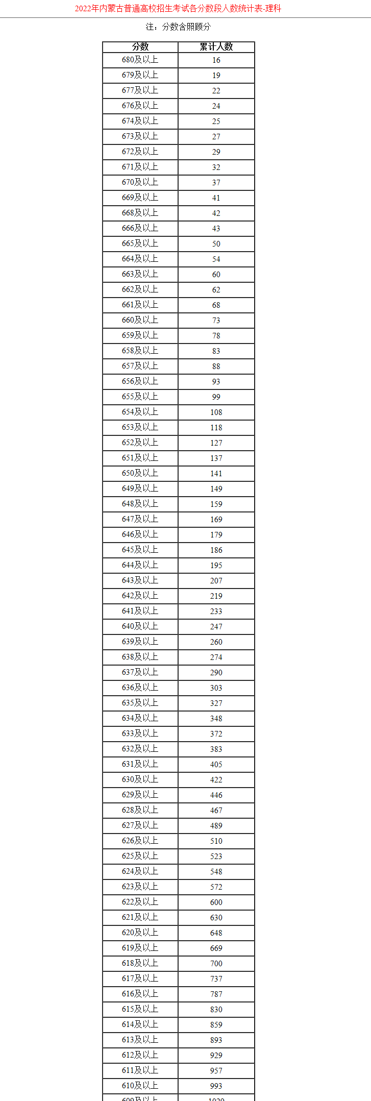 高考结束之后全国各地会陆续公布高考录取分数线,大家最想知道的是高考录取分数线了,那么你知道今年内蒙古的高考分数线吗?以下是小编整理的2022年内蒙古高考一分一段一览,希望可以提供给大家进行参考和借鉴。