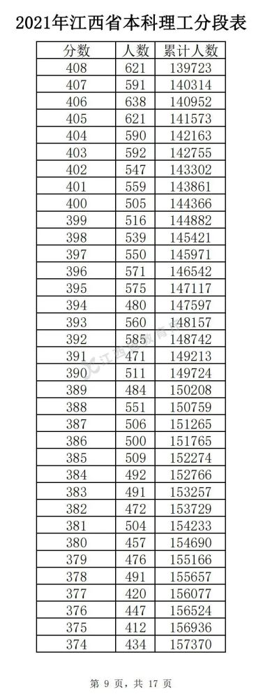 由于2022年江西理科一分一段还未公布,因此小编为大家找来江西理科往年一分一段,以供大家参考。