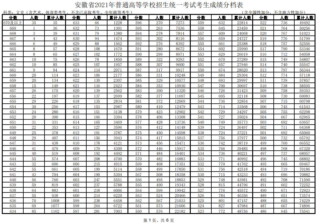 安徽高考一分一段_安徽高考分数线高考一分一段