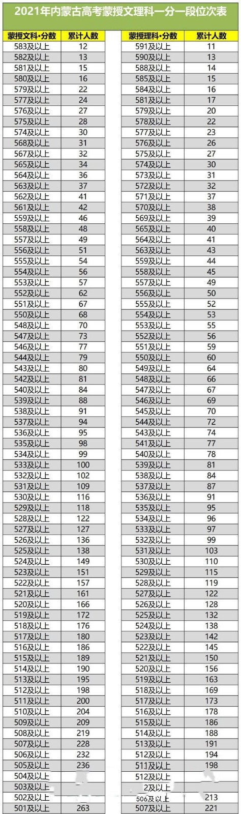 各地2021高考分数线都出来了,那么内蒙古高考一分一段表也公布了,那么为了方便大家,一起来看看吧!下面给大家分享关于2021内蒙古高考一分一段明细表最新,欢迎阅读!