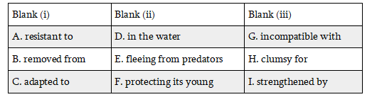 6. Analysis of 47.5-million-year-old fossils from Pakistan has yielded fresh insights into the early ancestors of modern whales. For example, Maiacetus inuus was a land animal (i)______ life in the sea. One Mariacetus inuus fossil encased a fetus positioned for a head-first delivery, which is typical of a land mammal and suggests the species gave birth onshore. But it probably spent much of its time (ii)______: its big teeth were suited for catching fish, while its flipper-like feet must have been (iii)______ walking.