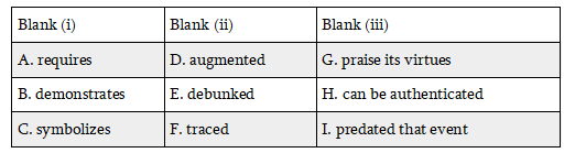 One sometimes hears that Marco Polo introduced pasta to the western world, having encountered it in China. This durable myth, which (i)_______ that nothing should have been known of pasta in Italy until 1295, when Marco Polo returned from the Far East, can easily be (ii)_______ by pointing out that there are Italian references to pasta that (iii)______.