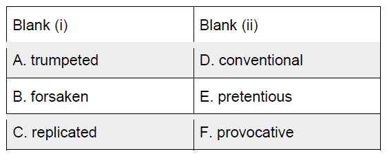 Recently the novelist has (i)______ the radically experimental forms with which he made his reputation in favor of more (ii)______ narratives, fencing in and turning an imagination meant to run wild.
